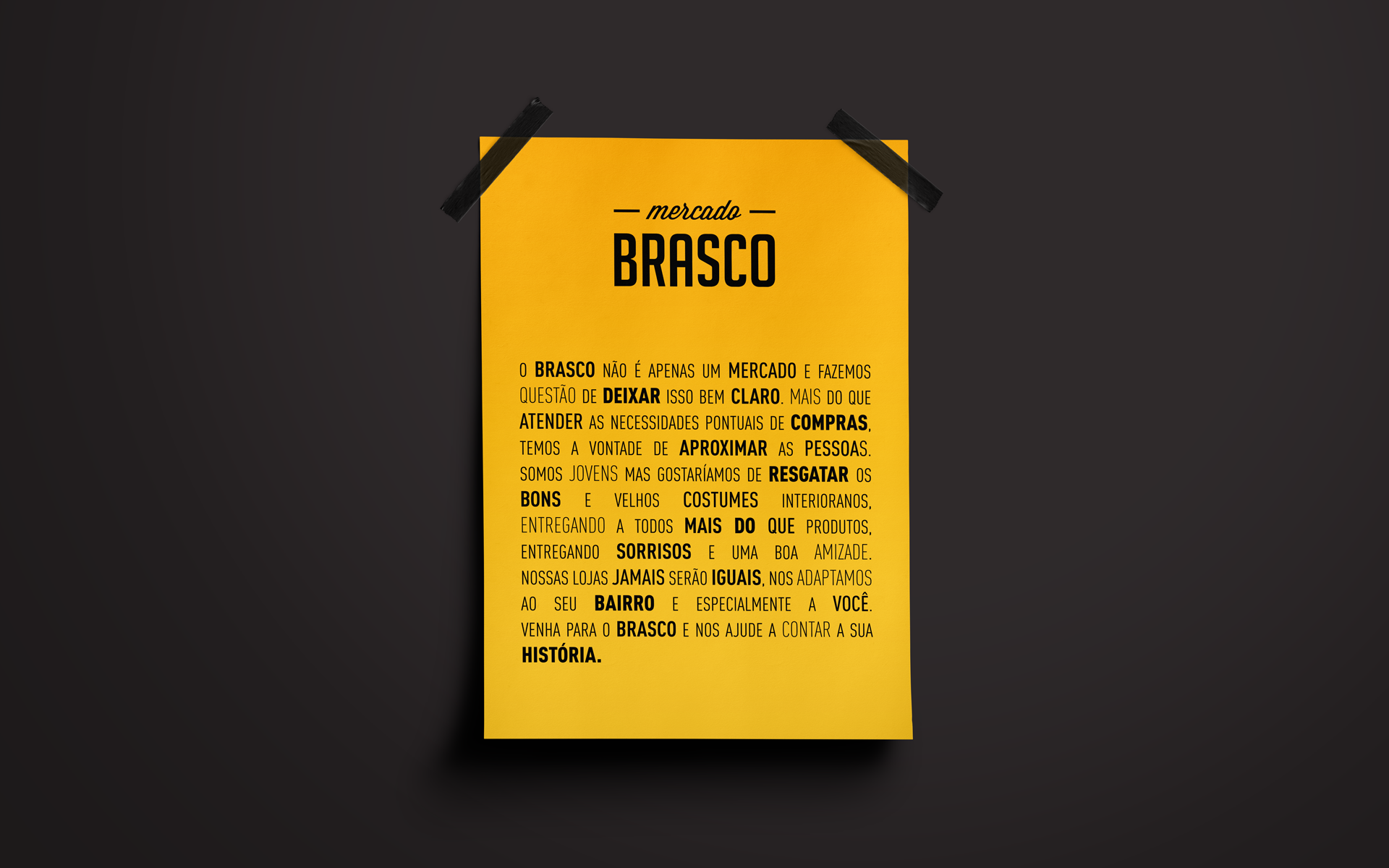 O mercado Brasco, situado em Porto Alegre/RS, nasceu da vontade dos empreendedores em resgatar os costumes interioranos, trazendo esta proximidade no relacionamento e no trato com os vizinhos, para a "cidade grande". Ser o ponto de encontro do bairro. Mais do que atender as necessidades de compra, o ideal era aproximar as pessoas.