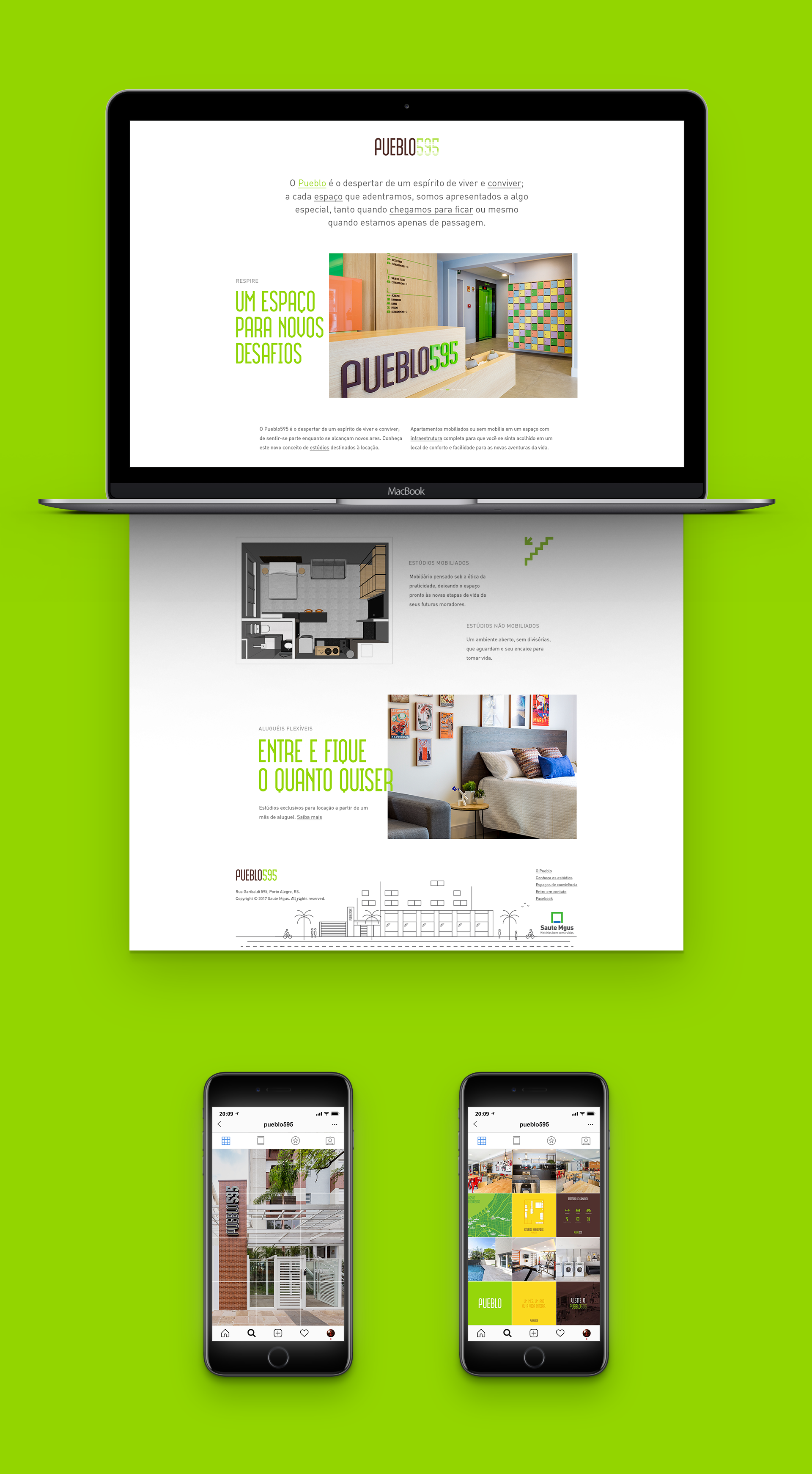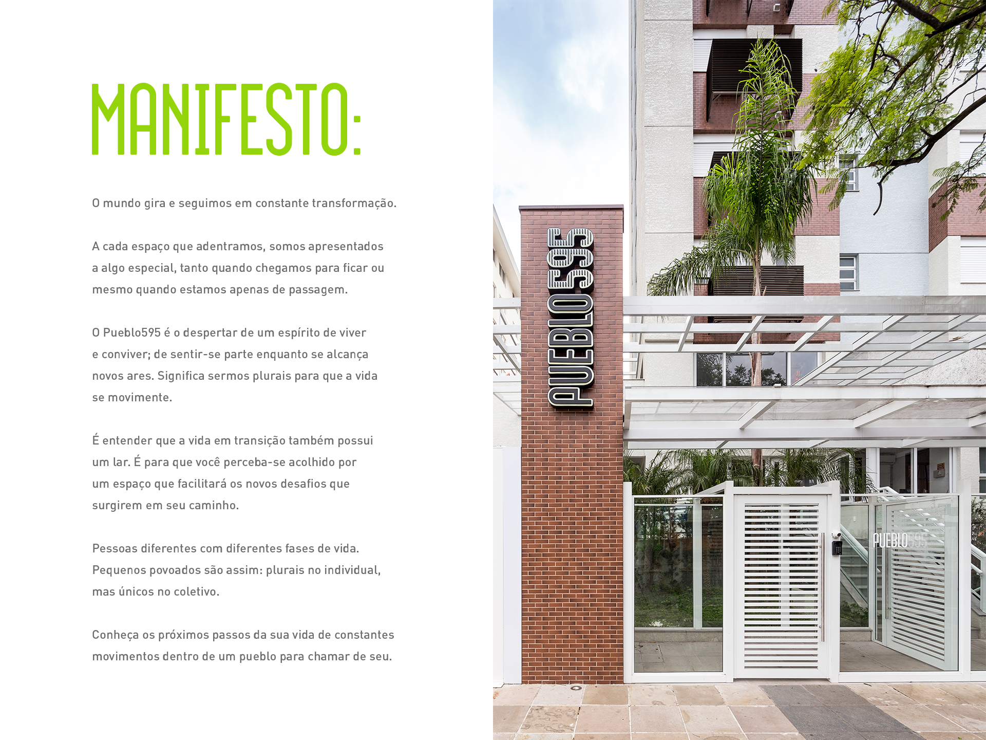 O Pueblo595 é um novo conceito de empreendimento em Porto Alegre/RS, com estúdios exclusivos para locação. O prédio também se mostra inovador por seguir a ideia de coliving, movimento que estimula integração, sustentabilidade e colaboração entre moradores.