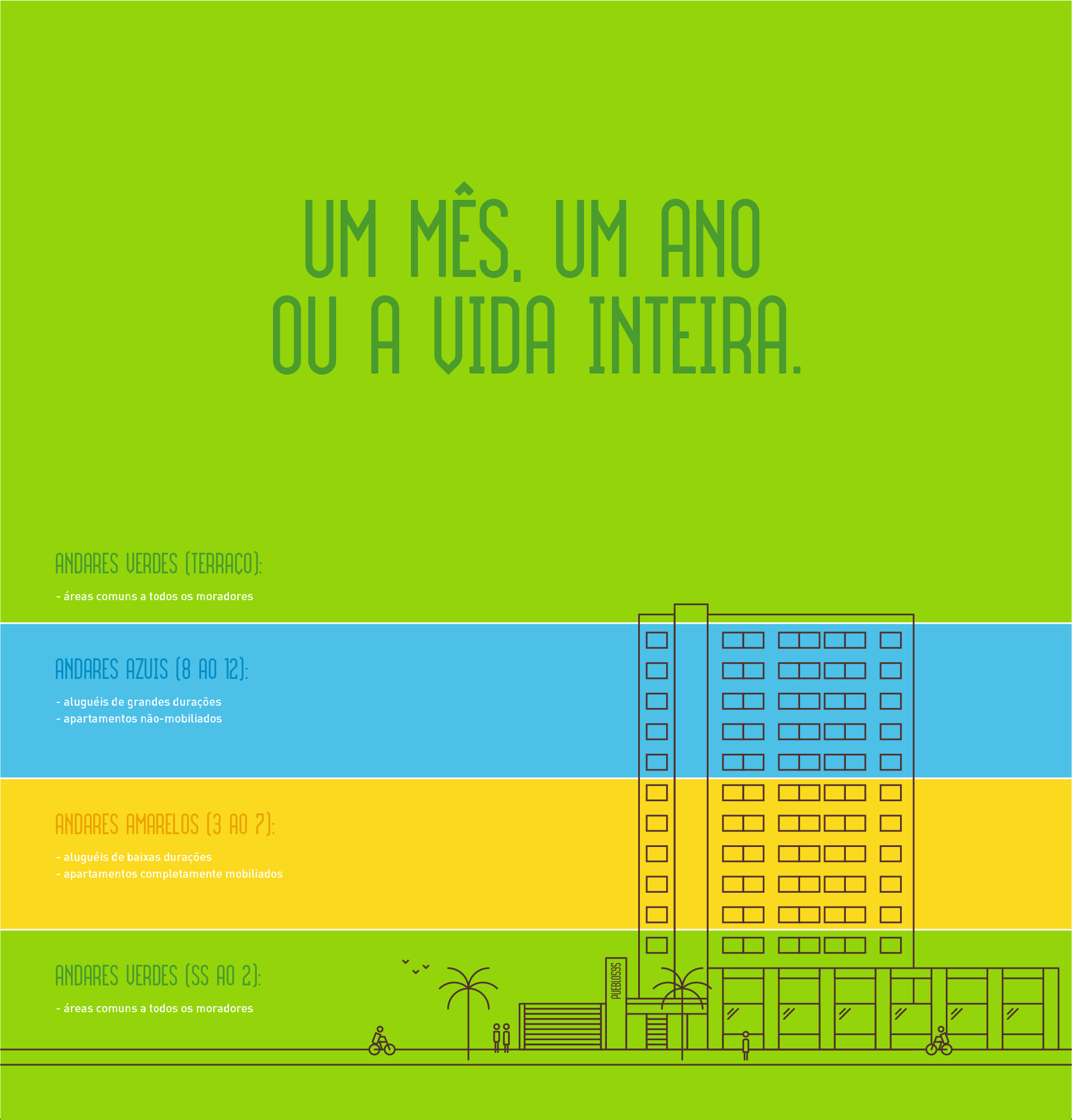 Pueblo595 is a new concept of building in Porto Alegre/RS, with studios for rental only. The place is still innovative for following the idea of coliving, a movement that encourages integration, sustainability and collaboration among residents.